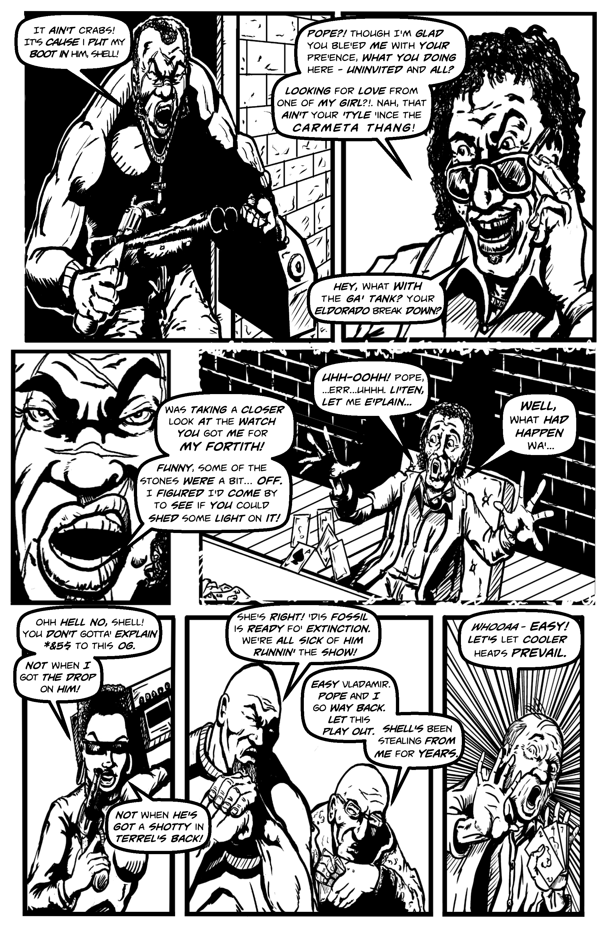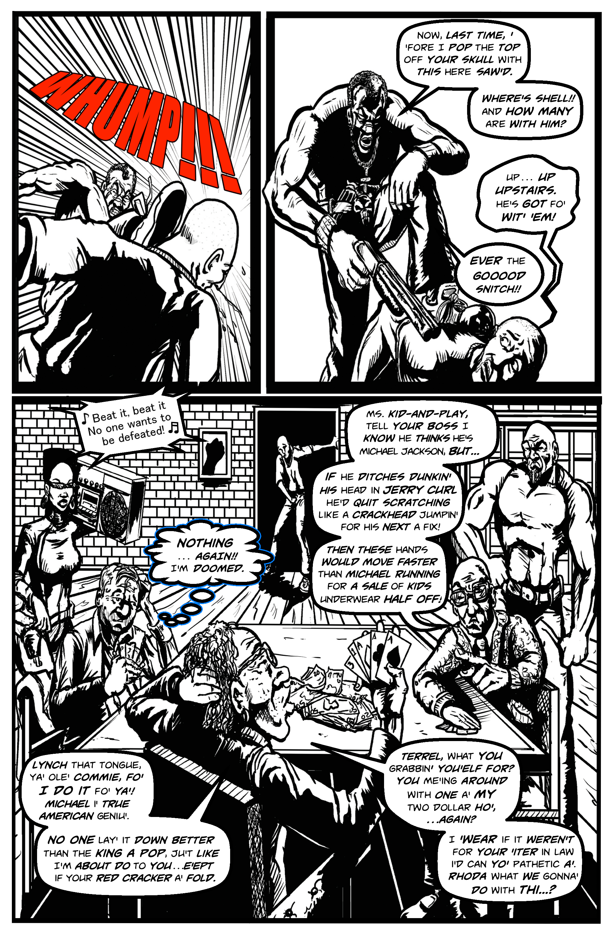 Shelly Vega is all smiles as he cleans up in his weekly poker game, but he doesn’t realize how long a day he is about to have. New pages are out, and the bi-weekly publishing is here. Every Tuesday and Friday be here to get your taste of Hound By Hell.
