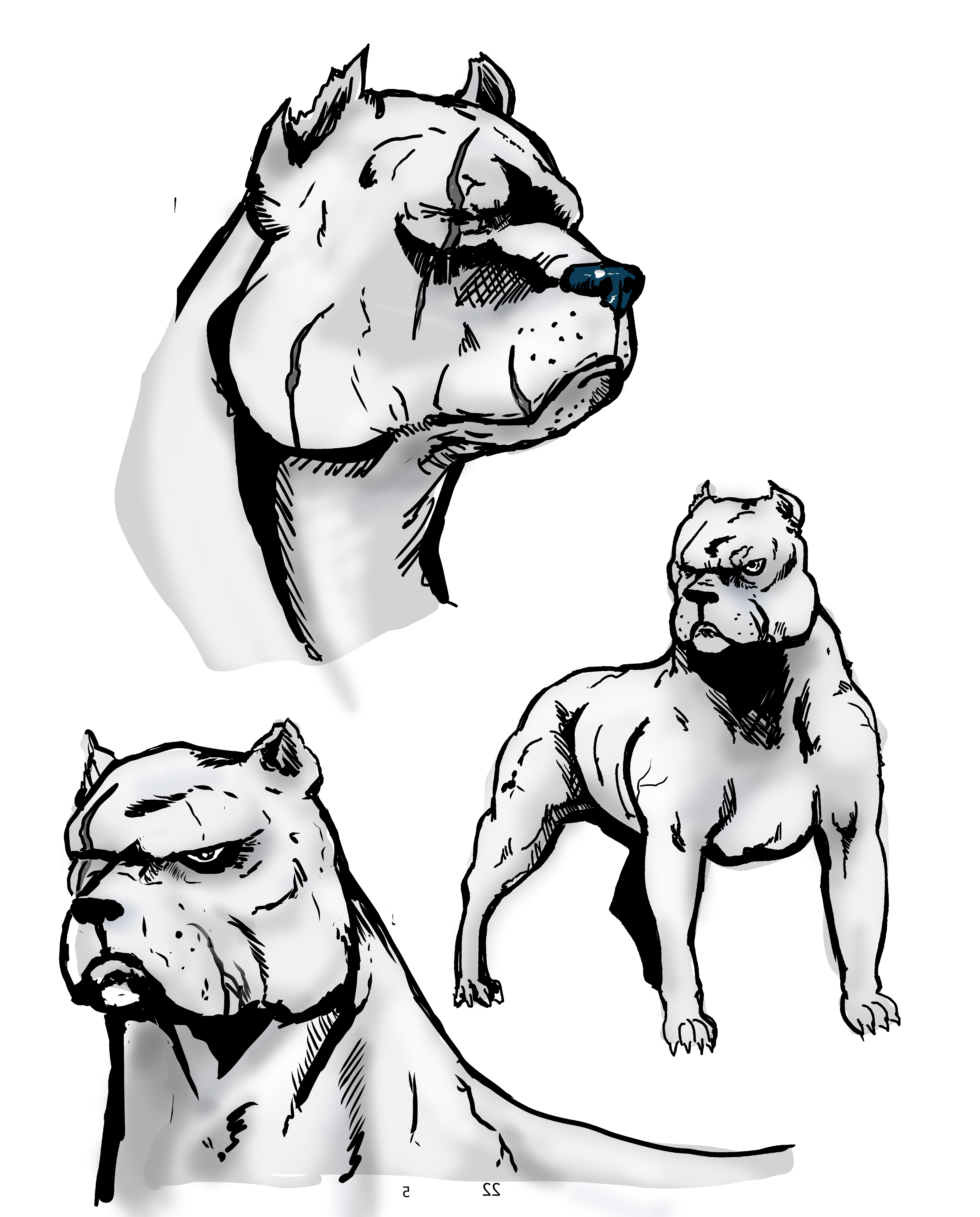Judah is a white Pit-bull who’s Popes most trusted associate. Pope rescued Judah from death in a dog-fighting ring. Drawing a long-standing marker, Pope took Judah from his former master and nursed him back too health. Judah’s gratitude and loyalty is evident by the numerous scars he bares from gunshot to knife wounds, most notably, his missing right eye from the blow of an axe.
